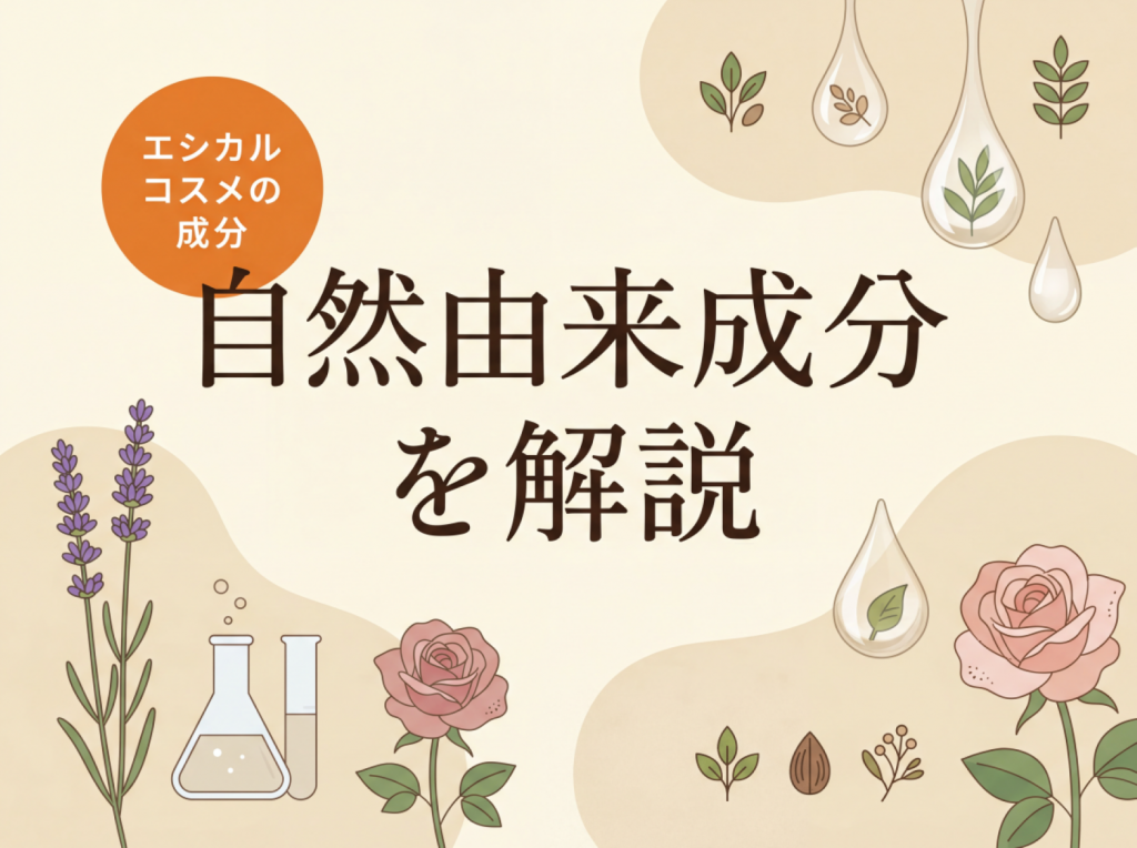 エシカルコスメに使われる自然由来成分について、シアバターやホホバオイル、カレンデュラなどの代表的な成分をご紹介しました。これらの成分は、肌にうるおいを与え、肌を整え、すこやかに保つ働きが期待できます。自然由来成分を選ぶ際は、成分表示や認証マーク、自分の肌質や好みに合わせて選ぶことが大切です。