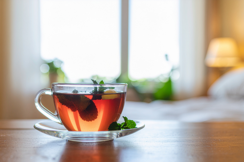 起床後、白湯の代わりに温かいハーブティーを一杯飲むことから一日を始めてみましょう。朝の体は意外と冷えているもの。温かいハーブティーで内側から温めることで、すっきりとした目覚めをサポートします。香りを楽しみながらゆっくりと飲む時間は、心の準備時間にもなります。